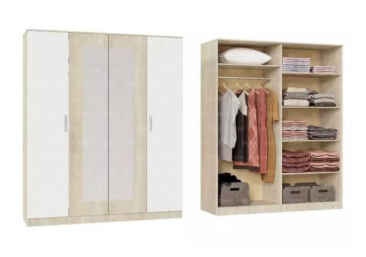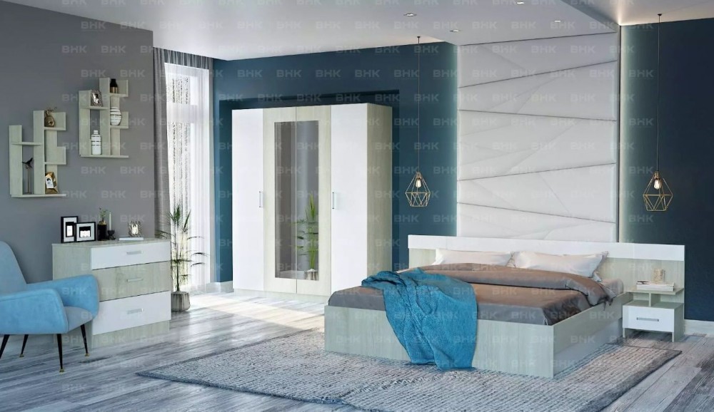 *Цена указана за модули: Кровать 1600 (настил проложка) / Комод / Тумба прикроватная (2шт. в упаковке) / Шкаф 4-х створчатый.