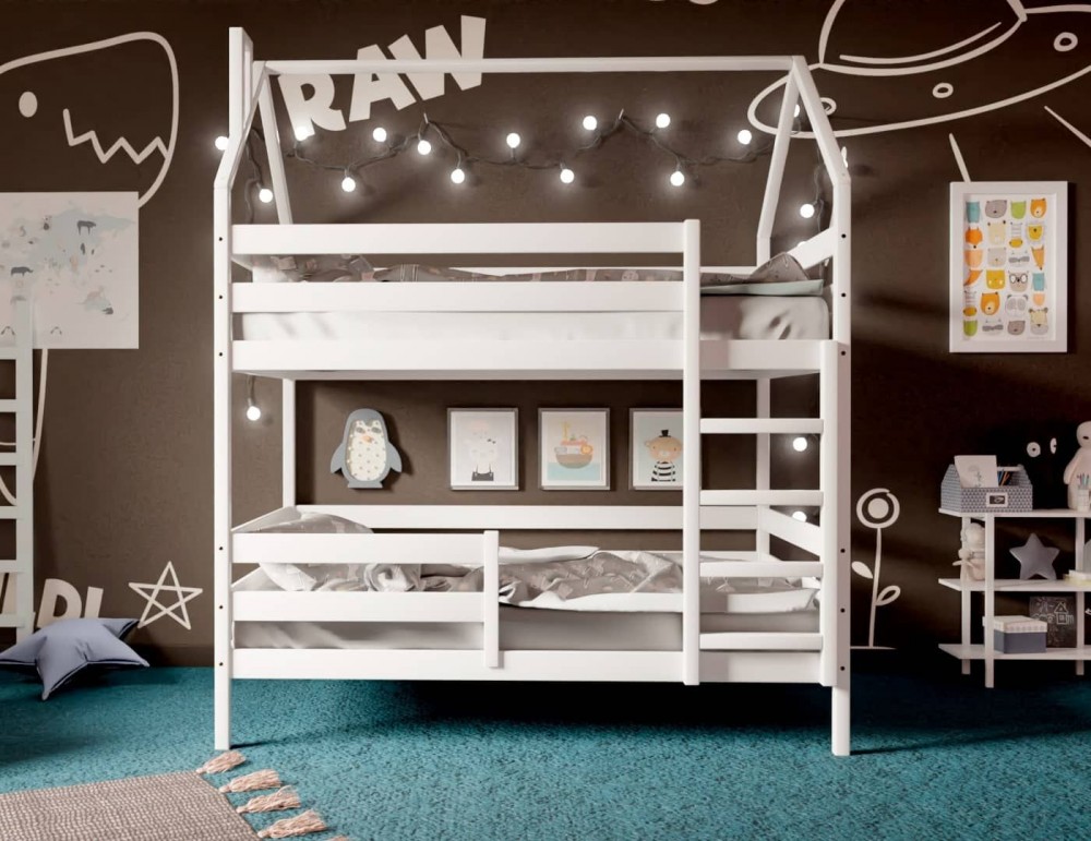 Интернет-магазин "Мебель 24" рад предложить Кровать-домик двухъярусная 80*160 Белый по привлекательной цене, от производителя ЭКОДРЕВ-ЕК.